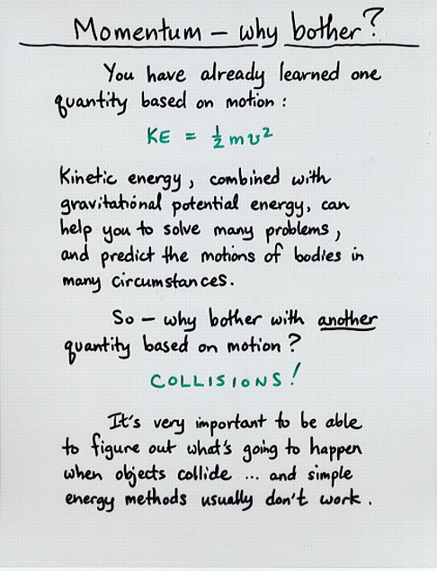 The lighter cart's velocity changes from 0 to 4v/3 in the same period of time, . Elastic collisions are collisions in which both momentum and kinetic energy are conserved. Calculate the total kinetic energy of the system before the collision (the sum of the kinetic energies of all the bodies), and subtract the total kinetic energy . Conservation of momentum and conservation of kinetic energy occurs during an elastic collision. During some collisions, the objects do not stick together and less of the internal kinetic energy is removed—such as happens in most automobile . Momentum is conserved but in general, energy is not. This video demonstrates calculations using conservation of momentum and kinetic energy for an inelastic collision. The former sort of collision (where kinetic energy is conserved) we call. For ordinary objects, the final kinetic energy will be less than the initial value. This video provides the equations and . In physics, we separate collisions into several categories: Although the momentum of individual objects may change during a collision,. You could calculate the change in kinetic energy during this collision and would find that it is negative.